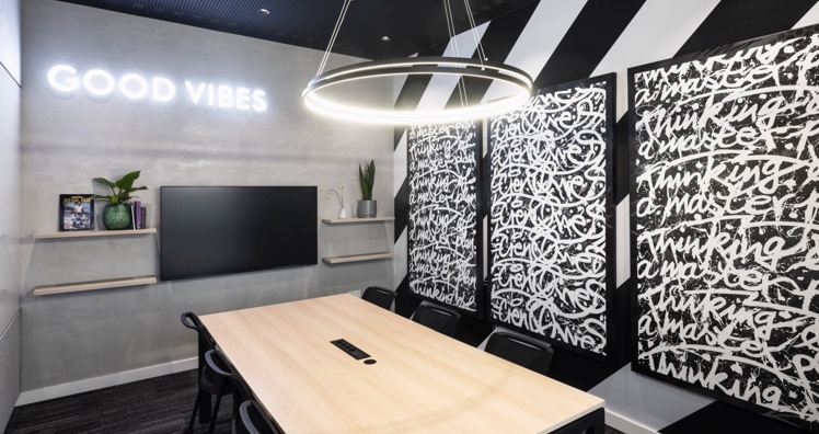 Das neue Büro, das diesen Monat eröffnet wird, ist in mehrere Bereiche unterteilt, die von verschiedenen Musikgenres inspiriert wurden. Der Green Room, in dem Kunstwerke der in Berlin lebenden, kolumbianischen Künstlerin Carolina Amaya zu sehen sind, steht ganz unter dem Motto Indie, die Wand der offen gestalteten Arbeitsplätze zeigt ein Mural von Akte One, das an Berlins ikonische Street Art erinnert und der Konferenzraum enthält ein individuelles Triptychon des deutsch-französische Urban-Artists Cren.
