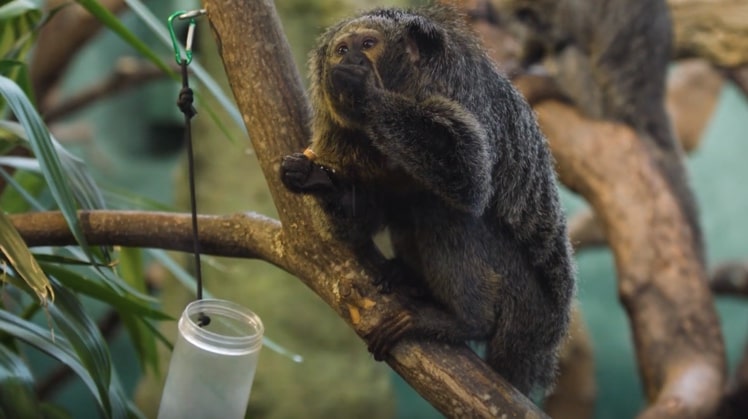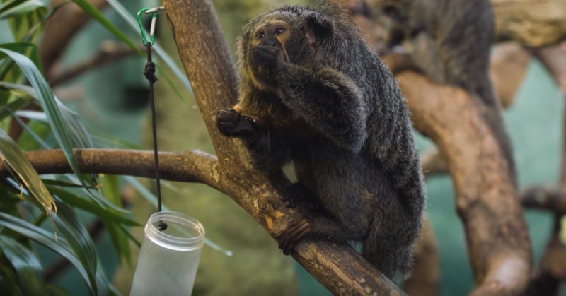 Tier-Computer-Interaktionsspezialisten der University of Glasgow und der Aalto Universität haben einen mit Sensorik gespickten Tunnel entwickelt, in den drei weißgesichtige Sakiaffen im Korkeasaari Zoo in Helsinki hineinkrabbeln können.