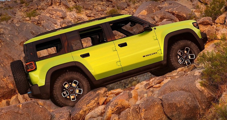 Ein weiterer Jeep-Stromer hört auf den Namen Recon. Dieser Offroader teilt sich die Plattform mit keinem Verbrennermodell, sondern ist von Grund auf als Elektroauto konzipiert. Als Verbrenner-Pendant kann der Wrangler herangezogen werden. Denn auch der Recon soll beeindruckende Offroad-Fähigkeiten aufweisen. Zu den verbauten Geländefeatures zählen unter anderem ein elektronisches Bodenhaftung-Management-System, ein Sperrdifferenzial, eine Seilwinde mit Haken sowie eine Offroad-Bereifung. Wie beim Wrangler können auch hier die Türen und Scheiben entfernt werden. Die Weltpremiere des Recon ist für 2023 angekündigt, der Marktstart soll 2024 erfolgen.