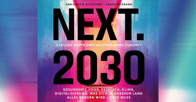 Über den Tellerrand in das digitale Deutschland von Morgen schauen – das machen 33 Vordenker:innen aus Wirtschaft, Politik, Sport und Wissenschaft im neuen Buch "Next.2030". Visionen und geballtes Wissen von CEOs, Forschern, Gründern oder Aufsichtsräten aus Deutschland und den USA treffen zusammen. Gespickt mit Praxisbeispielen beschreiben die Autorinnen und Autoren die Lage des Landes aus ihrer Sicht und bieten pragmatische Lösungen, Erklärungen und Rezepte.