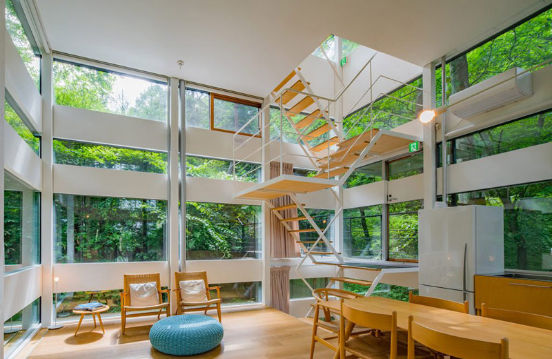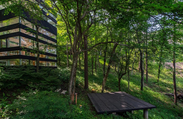 Im Ursprungsland der Bewegung steht nur ein besonderes Prachtstück zum Verkauf: ein Haus mitten im Wald, das so gebaut ist, dass man es nicht einmal verlassen muss um in den Genuss von Waldbädern zu kommen. In der Präfektur Nagano, in Karuizawa, einem bekannten Erholungsort etwa eine Autostunde von Tokyo entfernt, findet sich das knapp über 1.000 Quadratmeter großes Grundstück mit drei Stockwerken.