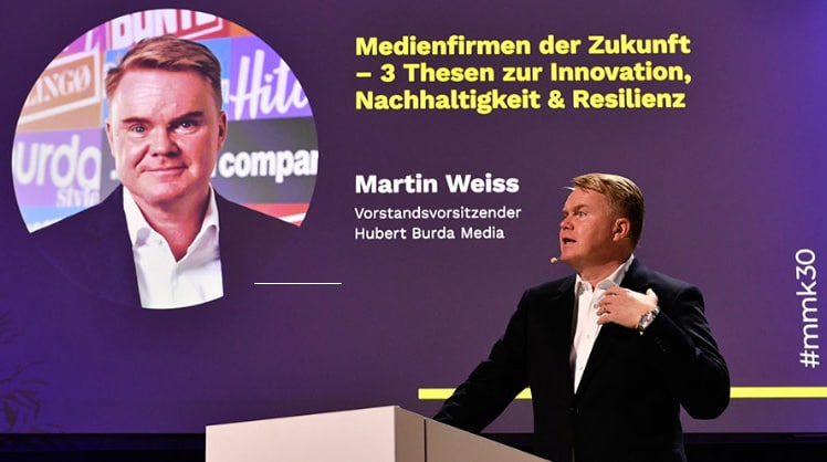 Im Rahmen des Münchner Management Kolloquiums (MMK) kam auch Martin Weiss, Vorstandsvorsitzender der Hubert Burda Media zu Wort. Im Laufe seines Vortrages "Thesen zur Innovation, Resilienz und Nachhaltigkeit" ging es um Impulse bezüglich Krisen, Widerstandsfähigkeit und Innovation innerhalb eines Unternehmens. Wie der CEO erklärte, widmete sich das Medienunternehmen im Vorjahr primär drei zentralen Fragen: Wie machen wir uns krisenfest? Wie erneuern wir unsere Geschäfte? und die letzte Frage lautete: Wie schützen wir unsere Umwelt besser?