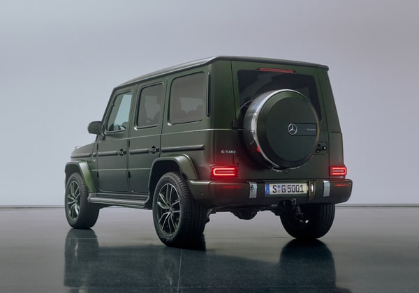 Die Final Edition erhält u.a. 20-Zoll-AMG-Leichtmetallräder im 5-Doppelspeichen-Design, die in Kombination mit der Farbe olive magno in Wagenfarbe lackiert und glanzgedreht sind. Für die anderen beiden Varianten sind sie in Schwarz gehalten und ebenfalls glanzgedreht. Außerdem präsentiert sich das Sondermodell von der Außenschutzleiste bis zum Einleger der Reserveradabdeckung mit "Final Edition"-Schriftzügen. Als Bestandteile des Manufaktur Logo-Pakets ergänzen Türknöpfe mit Logo-Prägung den Auftritt der limitierten G-Klasse. Hinzu kommt ein Projektor in den Außenspiegeln, der im Stand das "G"-Logo und den ikonischen Schriftzug "Stronger than Time" auf den Asphalt strahlt. Der in Hochglanz-Chrom ausgeführte Reserveradring sowie weitere Anbauteile in Wagenfarbe und Hochglanz-Chrom runden den eigenständigen Auftritt ab.