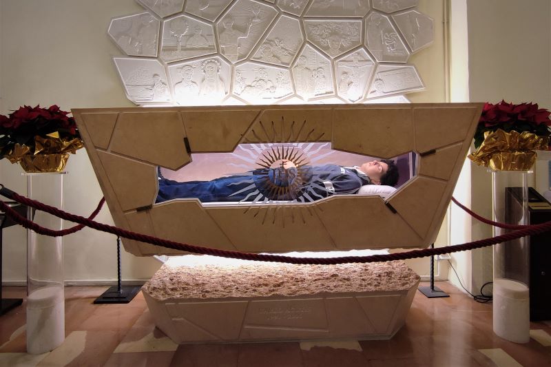 Selbst in der Wallfahrtskirche Santa Maria Maggiore in Assisi, wo Acutis’ Körper in einem gläsernen Sarkophag ausgestellt ist, werden Figuren und Mitbringsel verkauft. Der "Heilige in Sneakers" wird zum kommerziellen Symbol der Verbindung von Glauben und Gegenwart – visuell immer gleich: braune Locken, rotes Polohemd, Jeans, Turnschuhe. Inzwischen existieren sogar internationale Pilgerreisen unter seinem Namen.