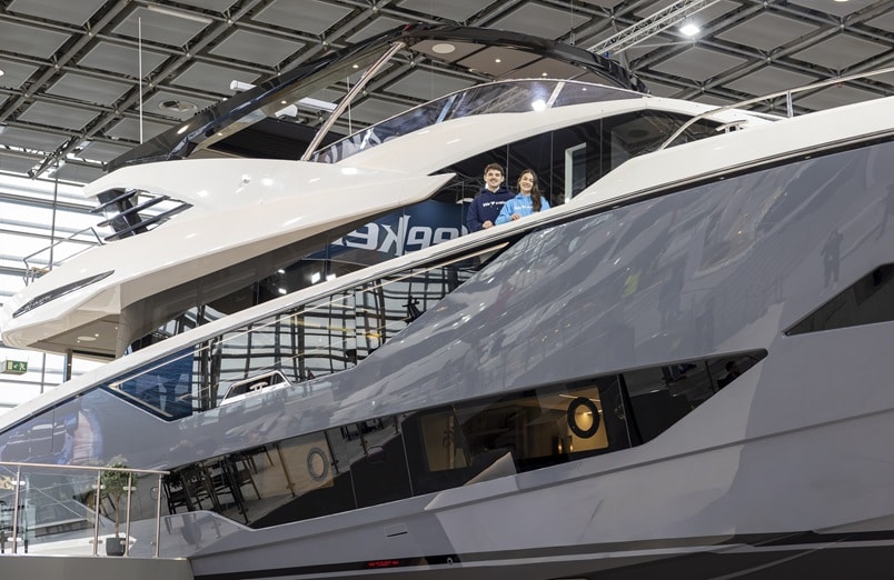 Direkt daneben positioniert sich Princess Yachts mit der X80, einem Modell der oberen Mittelklasse. Die Yacht bietet Platz für acht Gäste in vier Kabinen und rangiert preislich zwischen fünf und sechs Millionen Euro. Beide Hersteller sehen in Europa weiterhin starke Nachfrage – vor allem aus Skandinavien, der Schweiz und dem Nahen Osten. Princess-Marketingdirektor Simon Clare betont die Relevanz der boot Düsseldorf für das Unternehmen.