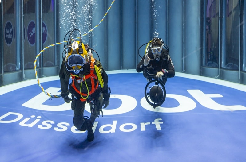 Cayago zeigt mit dem neuen SEABOB SE63 for Automobili Lamborghini in Halle 9 (A04-21) ein exklusives Water-Toy für Superyachten – im Design perfekt abgestimmt auf den ausgestellten Lamborghini Revuelto. Ein weiteres Highlight wartet im Dive Center (Halle 12): Ein Taucher der Bundesmarine demonstriert dort im vier Meter tiefen Turm die Technik des historischen Helmtauchens. Parallel zeigt ein SUEX-Taucher, wie man mit einem Unterwasser-Scooter mühelos durchs Wasser gleitet.