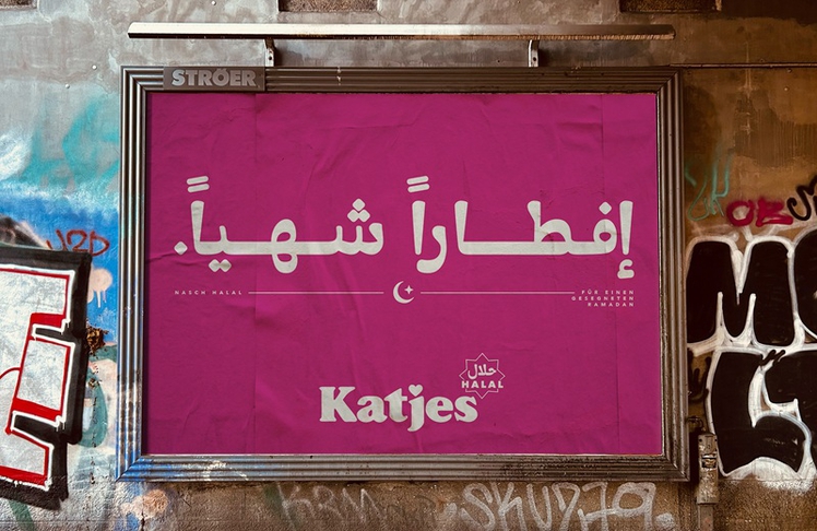 Katjes positioniert sich seit Jahren als "100 % veggie". Nach dem Verzicht auf Schweinegelatine folgte nun die Halal-Zertifizierung. Zum diesjährigen Ramadan setzt das Unternehmen gemeinsam mit der Agentur antoni_ auf eine bundesweite Out-of-Home-Kampagne. Zentrales Element ist eine arabische Headline mit dem Wunsch nach einem gesegneten Fastenbrechen, ergänzt durch eine deutsche Subline.